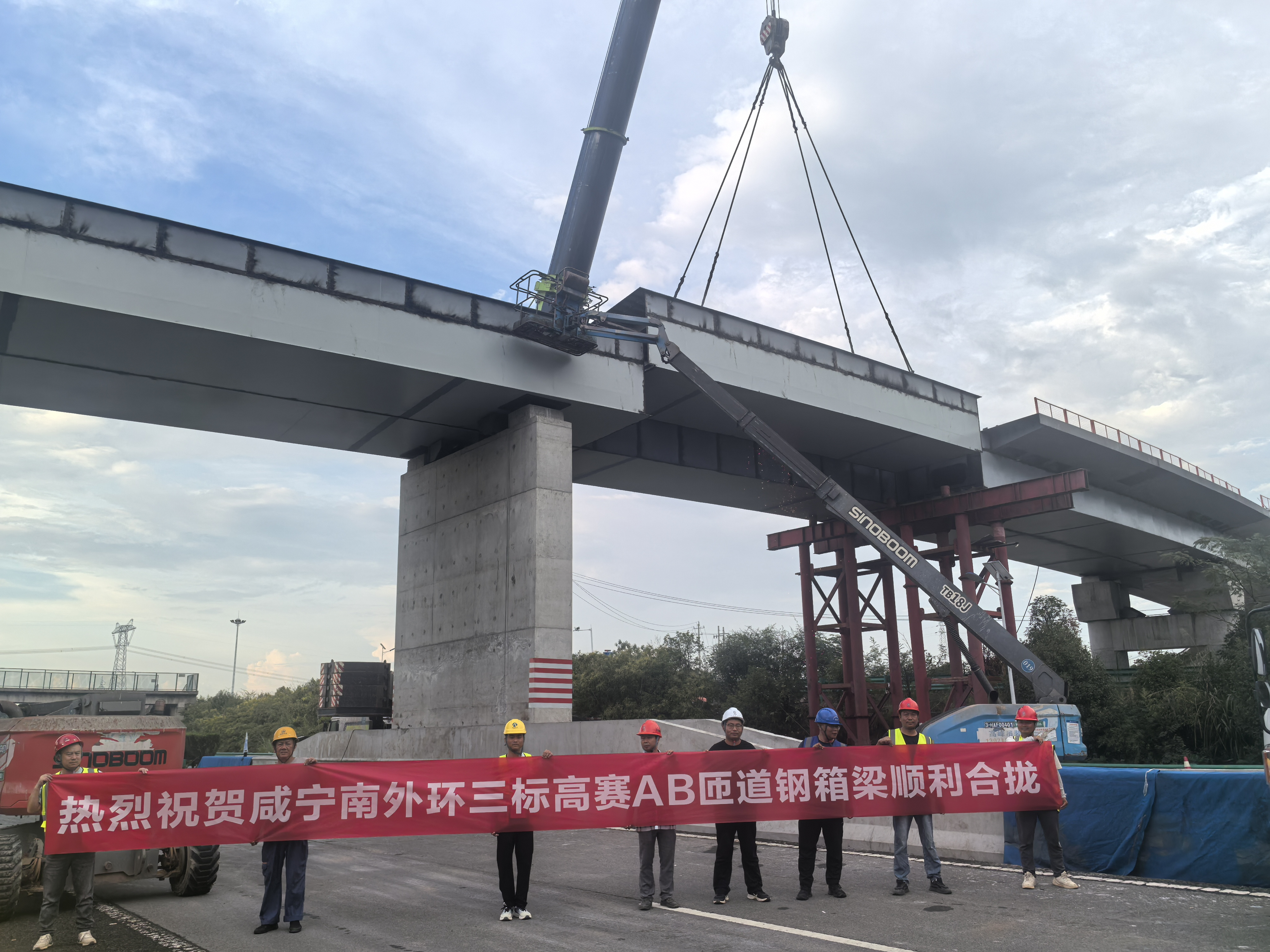 9月11日,隨著最后一節鋼箱梁精準就位,由興達公司承建的咸寧南外環高賽樞紐互通A、B匝道橋鋼箱梁架設圓滿完成。